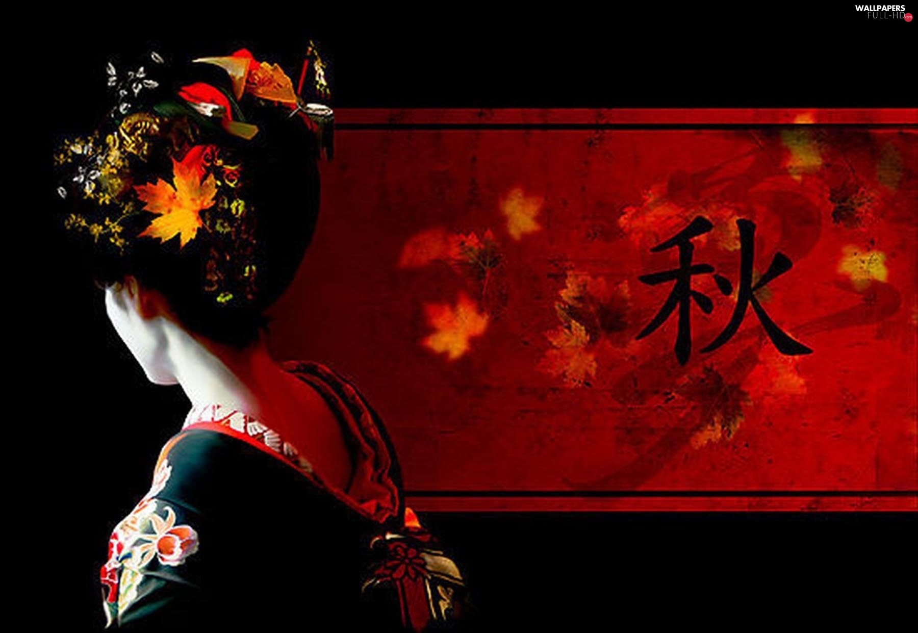 autumn, geisha