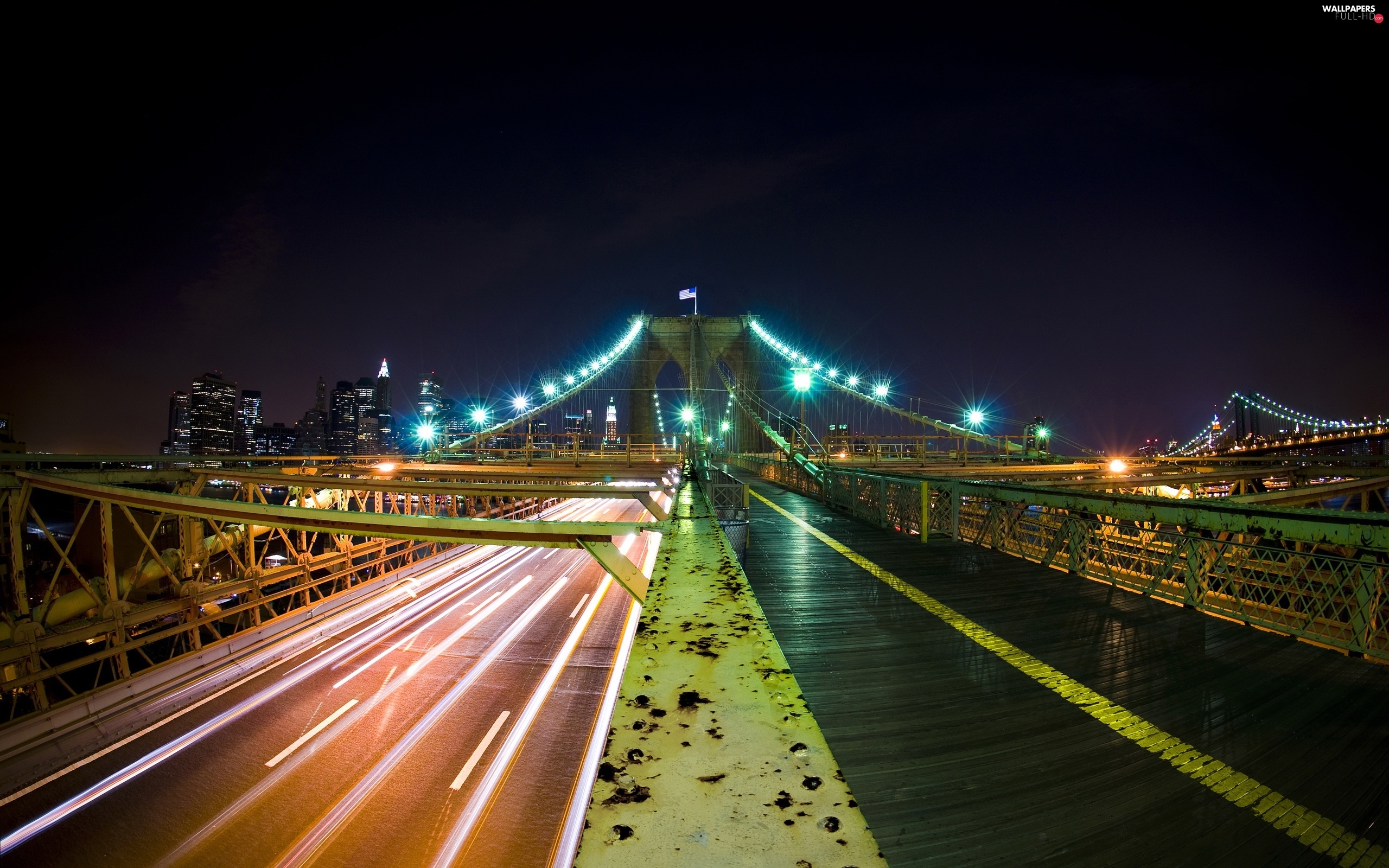 Night, bridge, Town