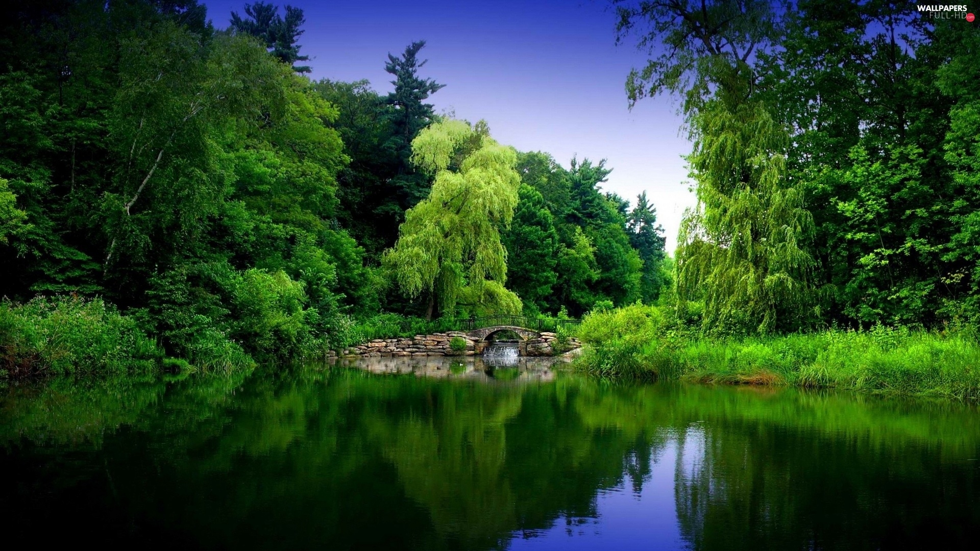 bridges, forest, River