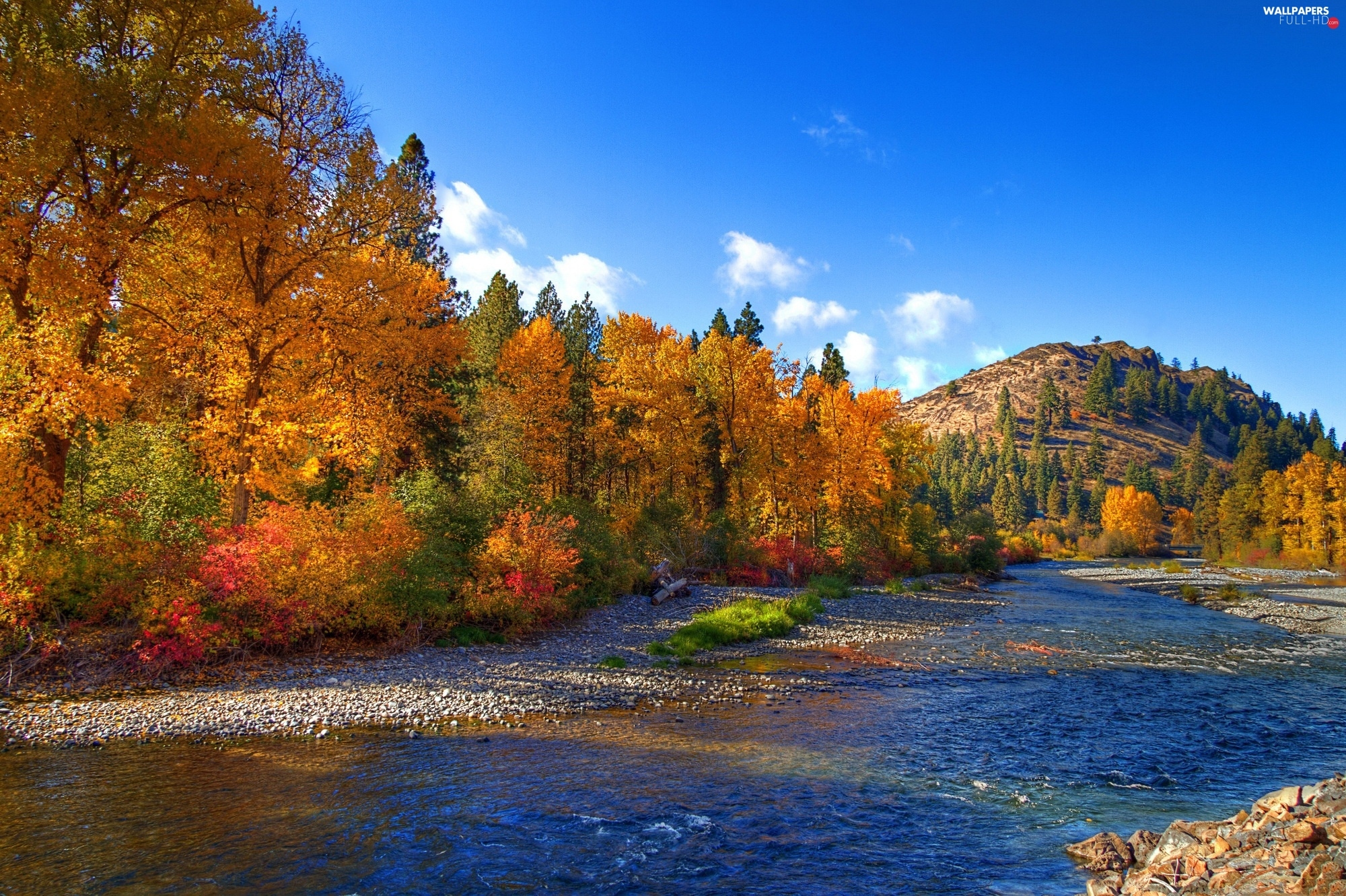 River, Hill, autumn