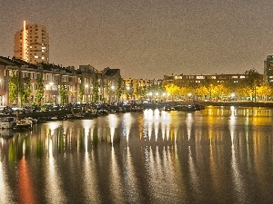 cloudy, over a canal, Amsterdam, Sky, houses