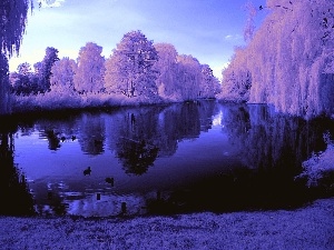 River, Rocks, woods