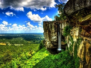 viewes, trees, waterfall, brook, bridges