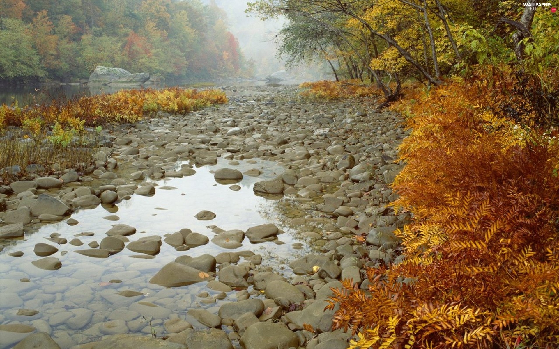 viewes, trees, River, Stones