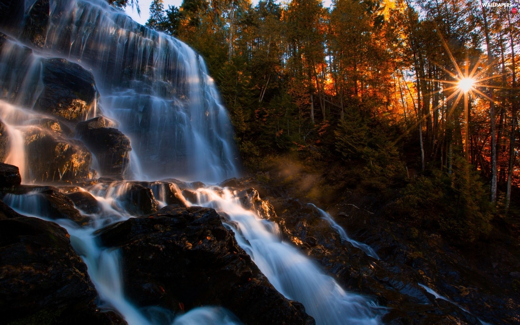 waterfall, Stones, Great Sunsets